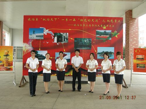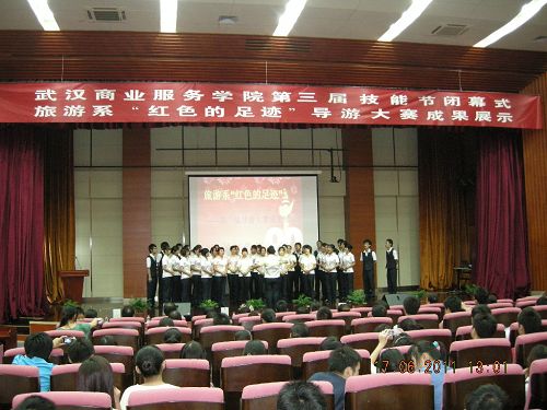 为迎接建党90周年,丰富同学们的课余生活,同时向全院介绍全国红色旅游的的新热点,旅游系导游协会在院团委的大力支持下举办了“红色的足迹”系列导游大赛,在2011年6月17日的技能节闭幕式上,导游协会作了“红色足迹”导游大赛成果展示之“纵游革命圣地。”