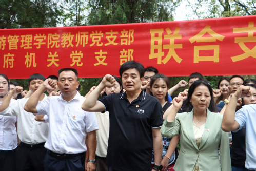 QY千亿国际党委书记杨崇君表示,我们要充分认识高校党建和企业党建合作共建的重要意义,在共建的过程当中,要不断创新共建的方式,丰富共建的内容,今天是以支部主题党日活动的方式进行,未来我们还可以通过联合党课、实地调研,互派互学等多种方式进行共建,实现优势互补,共同的促进我们教师的实践能力的提升,育人质量的提高和我们景区的发展体制。今后我们还要更加紧密地建立这种长效的合作关系,共同推进我们旅游业的发展。高校的优势是人才优势、治理优势,那么企业的优势可以为高校培养旅游人才提供实践教学基地,提供实践教学的人手,可以为老师们提高实践教育能力提供平台。在今后的共建过程当中,要密切保持联系,建立长效机制,共同为了旅游业的人才培养、旅游业的发展提质赋能。