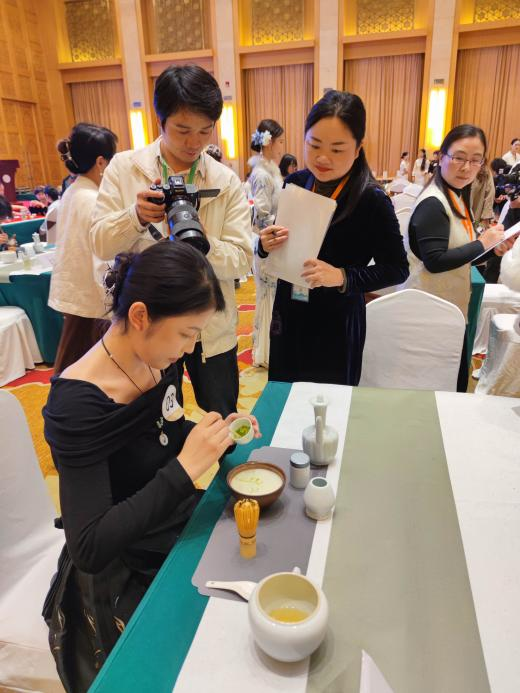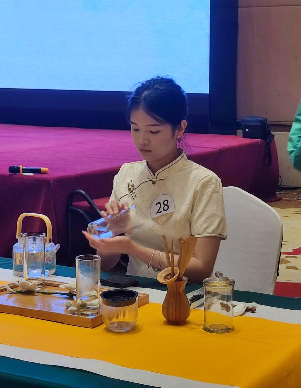 本届大赛汇聚了众多优秀选手,竞争异常激烈。2023级酒店管理与数字化运营专业华英茗在点茶茶艺项目中,手法行云流水,沫饽绵密如雪,完美复现了宋代美学的风雅意境,一举夺得一等奖的桂冠!易语萱和向思敏也分别在红茶盖碗茶艺和绿茶玻璃杯茶艺的比拼中,以优雅从容的举止、娴熟的冲泡技艺和充分的茶事理解,展现了红茶的醇厚包容与绿茶的清新自然,将三等奖收入囊中。