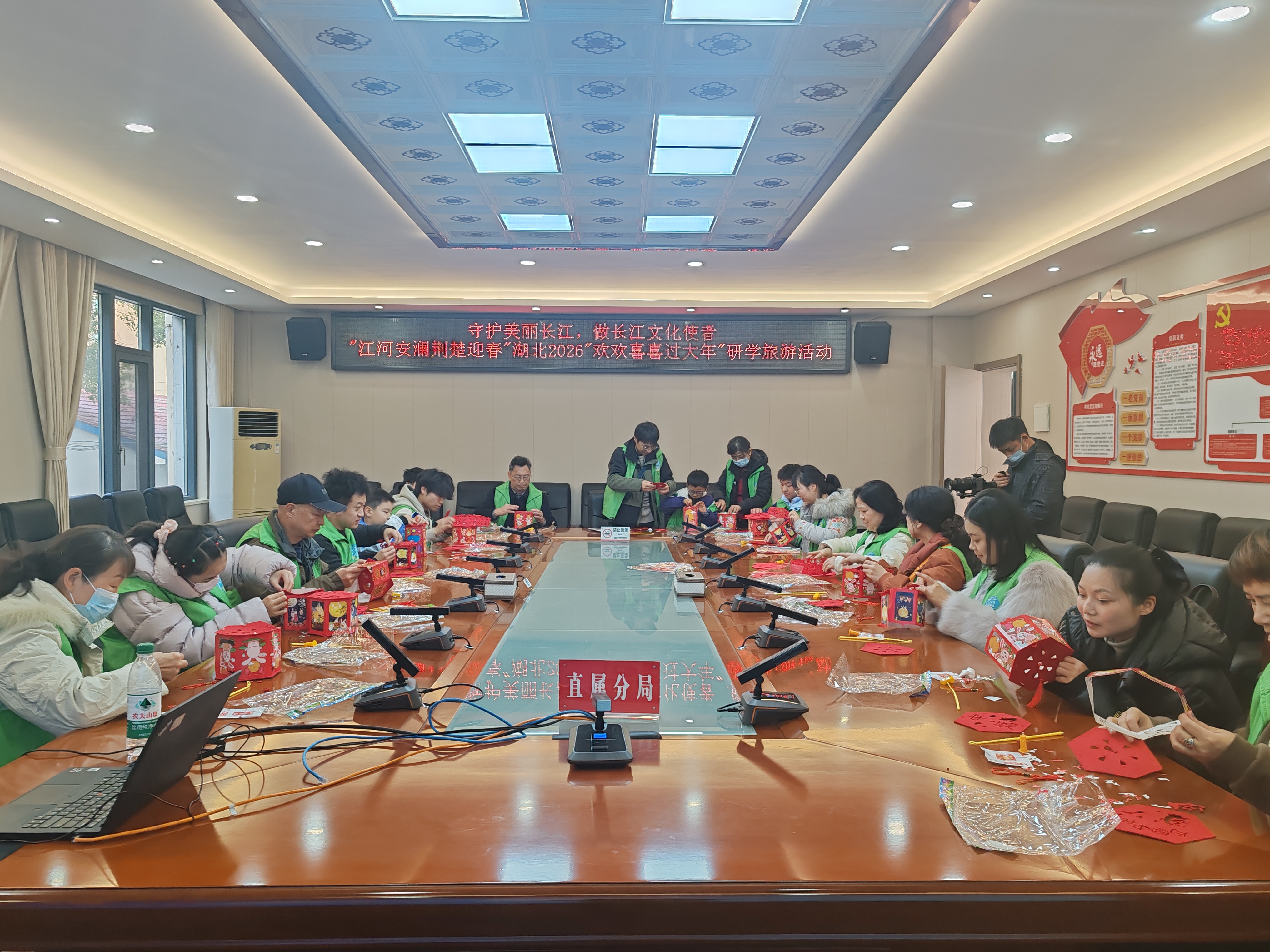 启动后,约二十名来自高校教师、亲子家庭及大学生代表组成的研学团,开启了为期两天的长江水利文明深度研学之旅。行程首日,团队赴仙桃考察杜家台分洪闸与排湖省级水利风景区,解读新中国成立初期治水工程的历史意义;随后前往荆州,调研荆江大堤观音矶与荆江分洪工程纪念碑,剖析荆江河段的水文地理与治理智慧。次日抵达宜昌三峡大坝,在坛子岭、185平台及截流纪念园开展现场教学,系统讲授这项“世纪工程”的技术突破与综合效益。活动还注重文化融合与情感共鸣,学员们亲手制作“欢欢喜喜过大年”手工国潮灯笼,于水利研学中融入节庆民俗,深化对“人水和谐”理念的理解与文化认同。